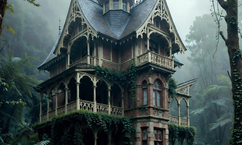 The Thorn-Wainscot, an imposing example of Queen Anne architecture, built in 1891, is characterized by its irregular shape, turrets, and extensive use of dark, carved wood. It sits deep in a valley, perpetually damp and shaded. To step inside is to be met by a tangible curtain of cold, wet air that clings to the heavy wallpaper and woodwork