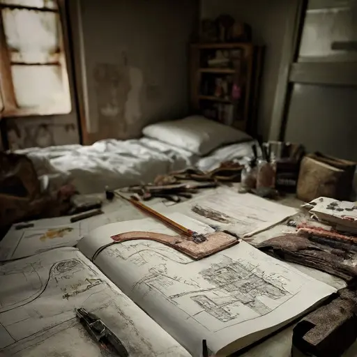 The house remains abandoned, blueprints untouched, pigments unmoved, brushes poised. The atelier preserves the memory of a life devoted to precise artistry and structural design, ended when vision failed, routines indefinitely suspended, leaving painter-engineering work unresolved, forgotten, and haunting through absence.