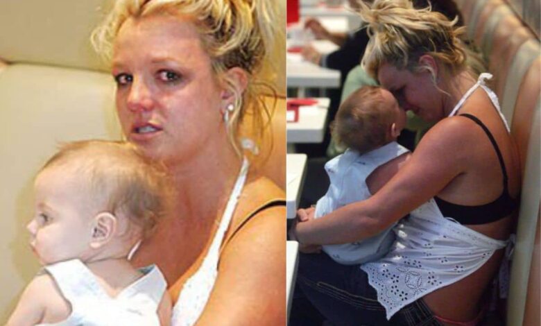 As she struggled to push through the chaotic crowd toward her waiting car, her loose pants got caught on her open-toed sandals, causing her to stumble badly. In that split second, Sean Preston’s little head jerked sharply backward, his orange hat flew off, and it looked terrifyingly like she might lose her grip on him entirely. Thankfully, her bodyguard reacted quickly, rushing in to steady her and prevent the baby from falling. Shaken to her core and overwhelmed by the ordeal, Britney ducked into a nearby café for a moment of refuge, desperately trying to catch her breath and calm down while tightly clutching her crying son.But even there, the invasion didn’t stop. Photographers pressed against the windows, continuing to snap photos of her as she sat inside sobbing, visibly distraught and holding Sean close for comfort. There was no privacy, no space to breathe, and absolutely no mercy from the relentless media machine that followed her every move.When the photos and video footage of the stumble hit the tabloids and front pages the very next day, the narrative was brutally one-sided. Headlines screamed about Britney “nearly dropping her baby” or questioned her ability to be a responsible mother—framing her as careless or unfit.