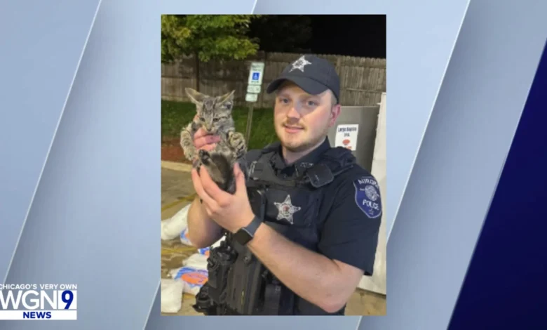 Heartwarming Rescue in Aurora, Illinois: Police Officers Move Over 1,000 Pounds of Ice to Free Tiny Trapped KittenIn a truly inspiring act of kindness and determination, police officers in Aurora, Illinois, went to extraordinary lengths to save a tiny, helpless kitten that had become trapped in a dangerous and difficult spot behind a large commercial freezer.When officers arrived at the scene, they quickly realized the rescue would not be easy.