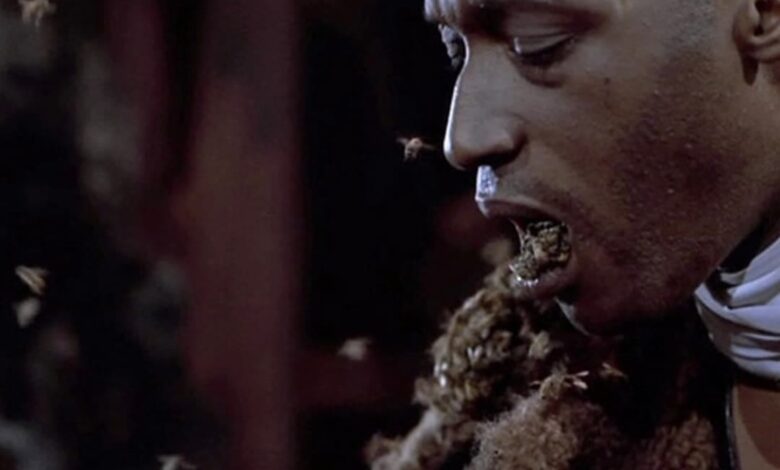 To protect himself and prevent the insects from entering his throat during the intense and claustrophobic moment, he used a dental dam as a safety barrier.Recognizing the significant risks involved in such a dangerous stunt, Todd’s contract reportedly contained a highly unusual and specific clause: he would be paid an additional $1,000 for every single bee sting he received while filming.The crew took further precautions to minimize danger by using younger bees for some of the shots, as they were believed to be less aggressive and less likely to sting compared to older, more experienced bees.Despite these careful measures, by the time the bee scene was fully completed, Tony Todd had endured a total of 23 painful bee stings.