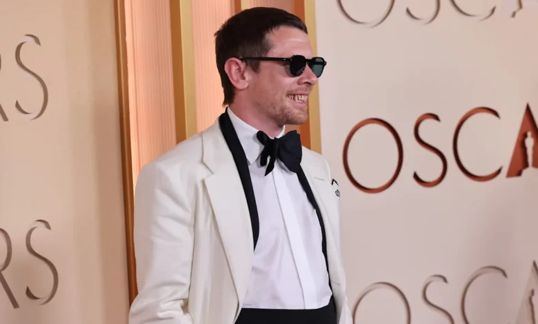 “Jack O’Connell Wears Prosthetic Vampire Fangs Covered in Blood at the Academy Awards”